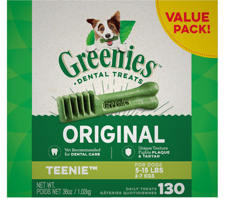 Greenies is the chew everyone knows, but that doesn’t mean it’s the strongest option. It does help with surface plaque and breath, but the formula is still fairly high in starch, which isn’t ideal for dogs prone to weight gain.